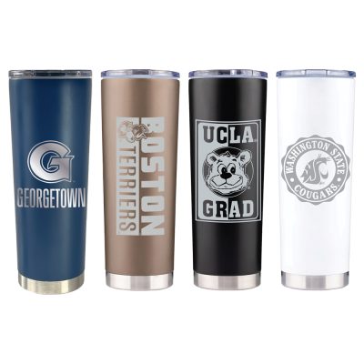 18 oz. Basecamp® double-wall, vacuum-insulated 18/8 stainless steel mug with solid steel handle and clear slide lock lid.